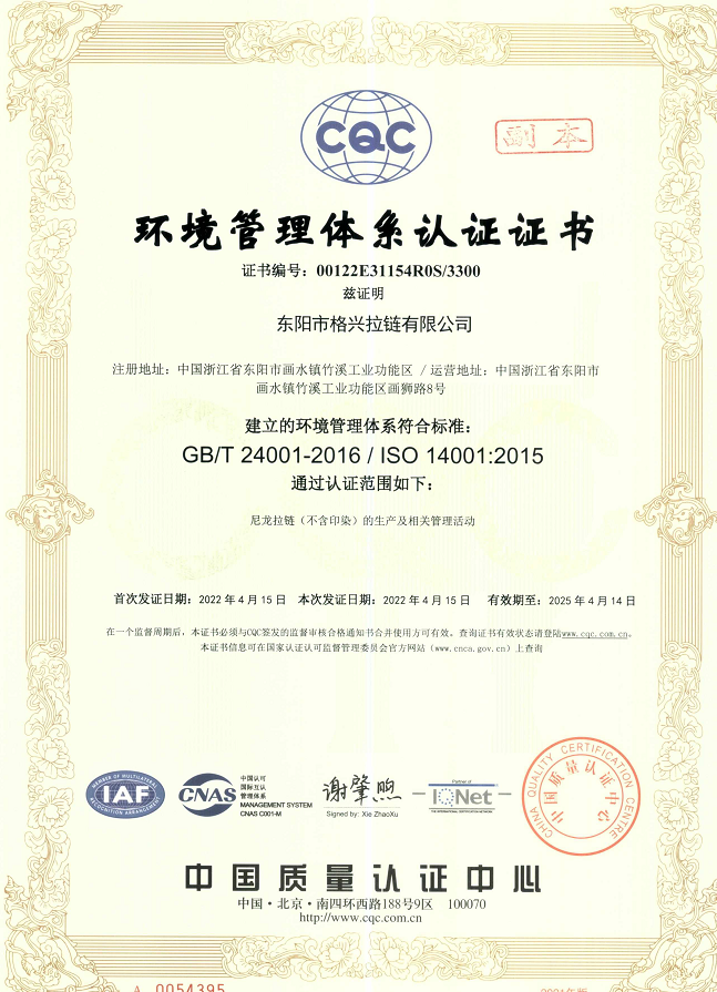 環境管理體系認證證書